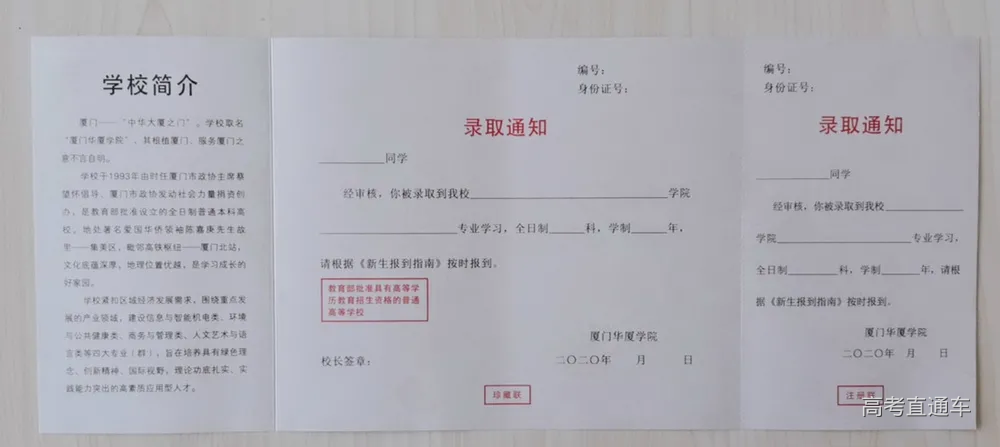 盼望已久的“厦门华厦学院录取通知书”