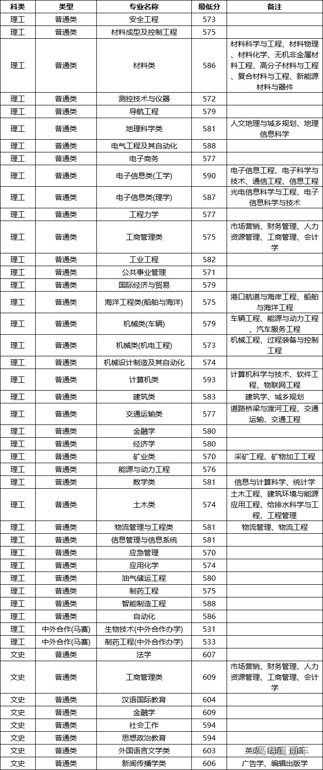 2020年武汉理工大学在陕西省分专业录取分数线