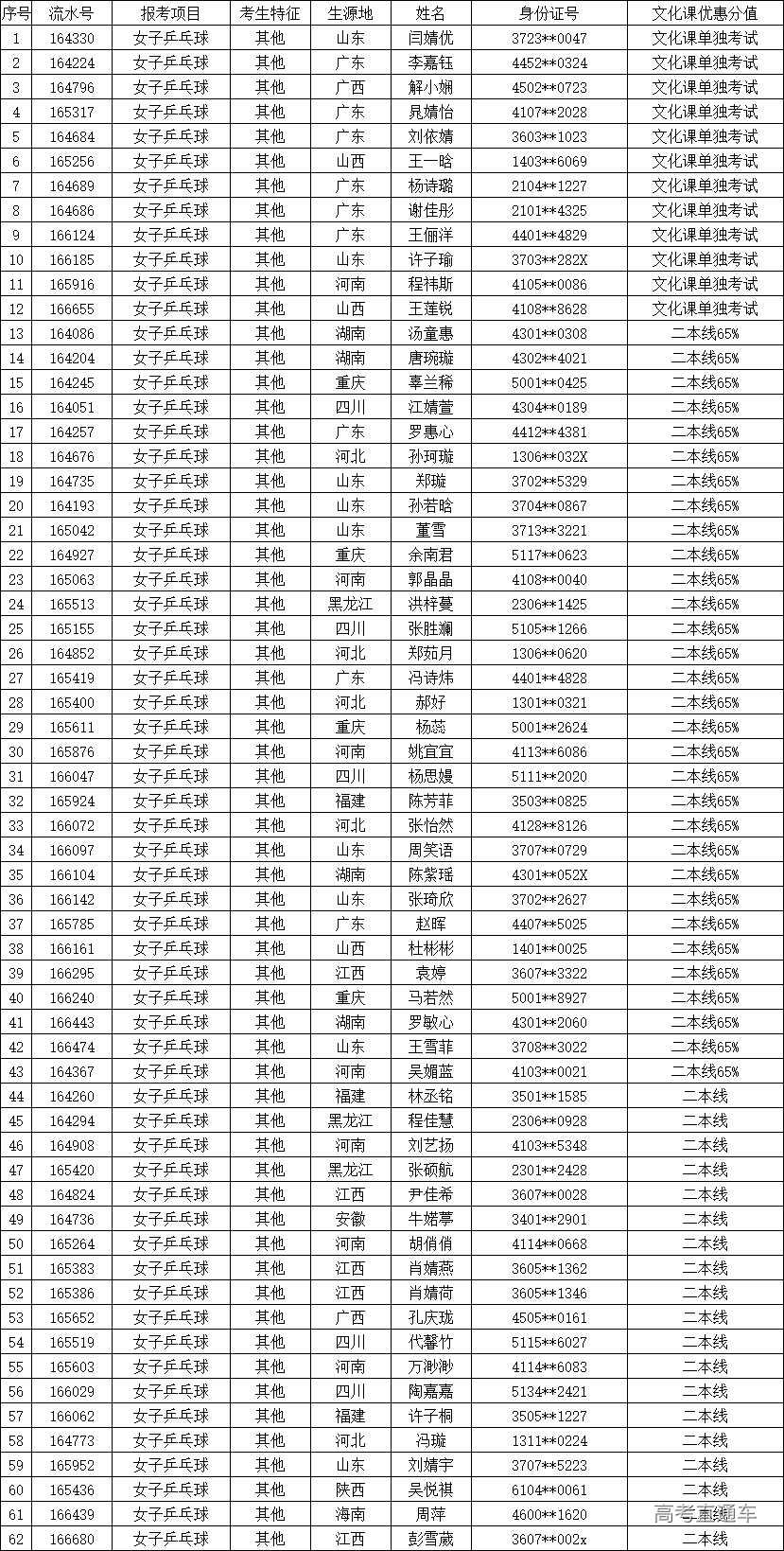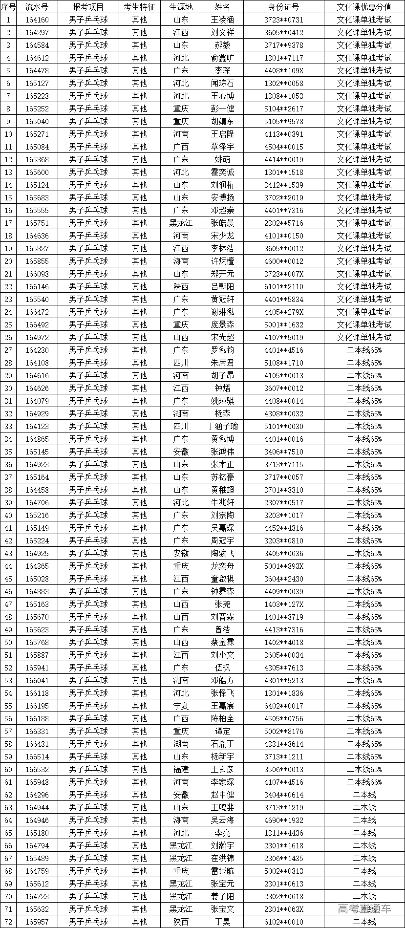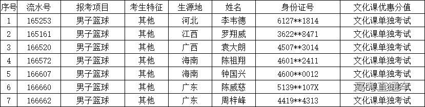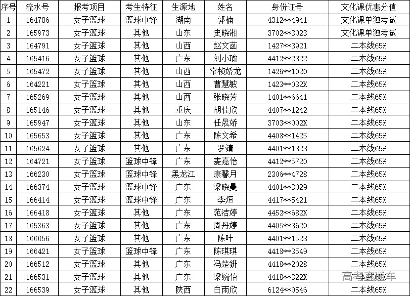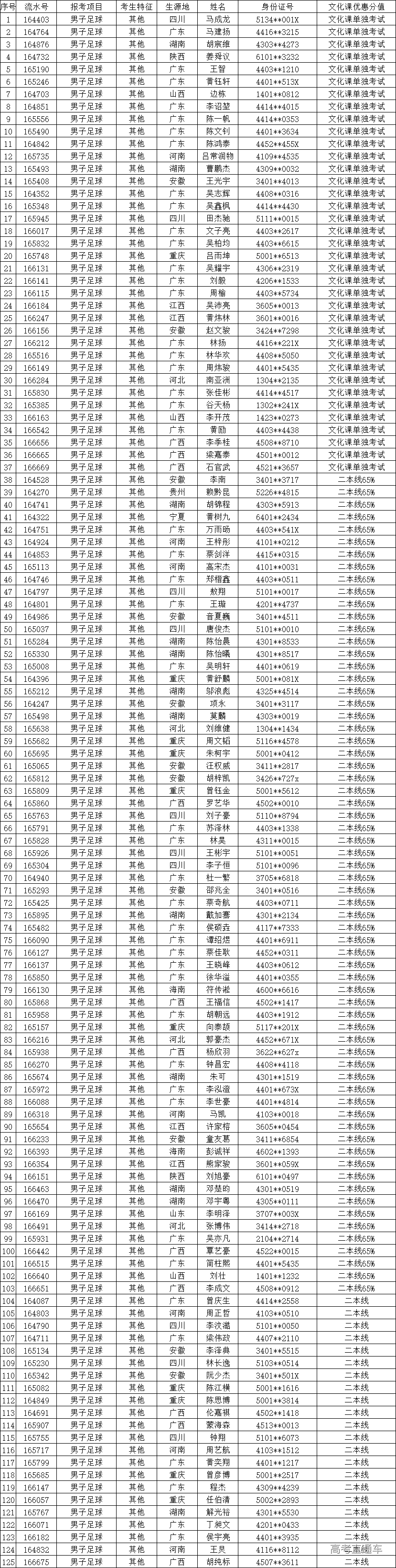 广东工业大学2021年高水平运动队招生体育专业测试报名资格初审合格名单