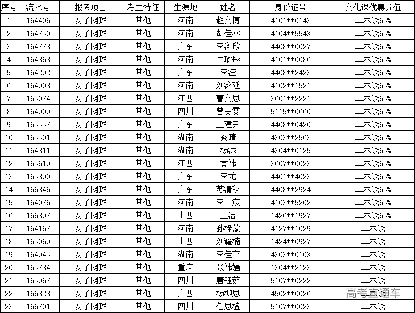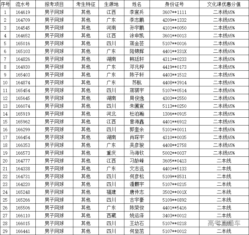 根据《体育总局办公厅 教育部办公厅关于进一步加强和规范运动员技术等级称号授予管理及考生资格审核工作的通知》(体科字(2019)141号)精神和《广东工业大学2021年高水平运动队招生简章》有关规定,经考生自主报名和我校高水平运动队报名资格审核工作小组审核,拟确定我校2021年高水平运动队招生体育专业测试报名资格初审合格名单(各项目具体名单见附件),现予以公示,公示期内如有任何异议,请以电话或电子邮件方式向我办反映。反映时须提供真实姓名,须有具体事实。匿名举报或不能提供事实材料,一律不予受理。