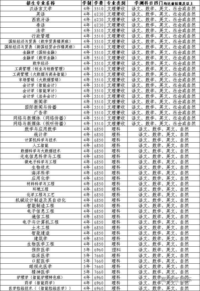 说明:1.招生专业若有变化,以夏季普通高考招生专业目录为准;2.医学类等专业不招收色盲、色弱学生,其他专业招收学生对身体健康体检要求和标准按照有关规定执行。