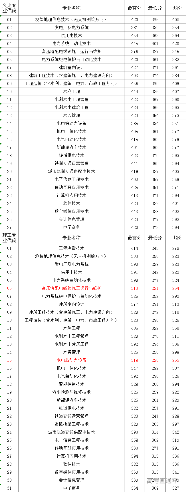 福建水利电力职业技术学院2020年福建专科批第一轮投档分