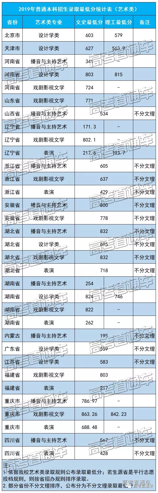 武汉大学2019年普通本科招生录取最低分统计表(艺术类)(持续更新中)