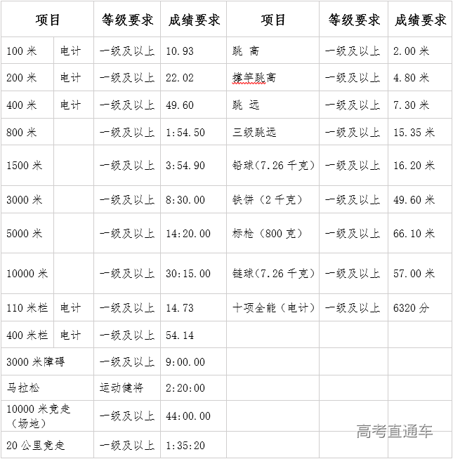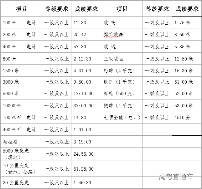 3.如果考生所在省(区、市)组织统一的高水平运动队体育项目专项测试,考生还须达到所在省(区、市)的相关成绩要求。