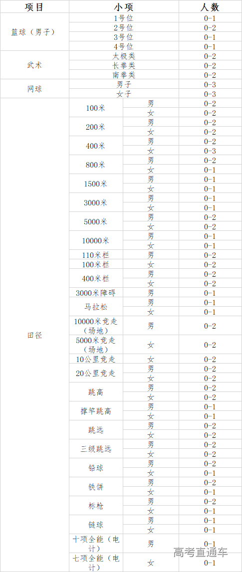 注:实际录取人数将根据生源情况进行适当调整,结合运动水平择优录取,宁缺毋滥。