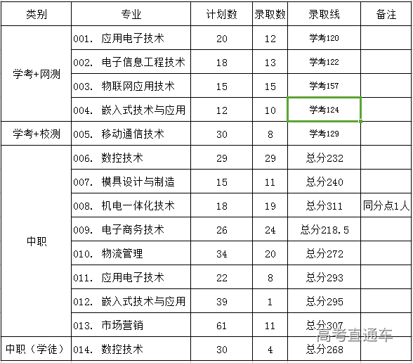广东机电职业技术学院2019自主招生录取分数线