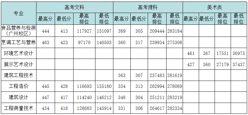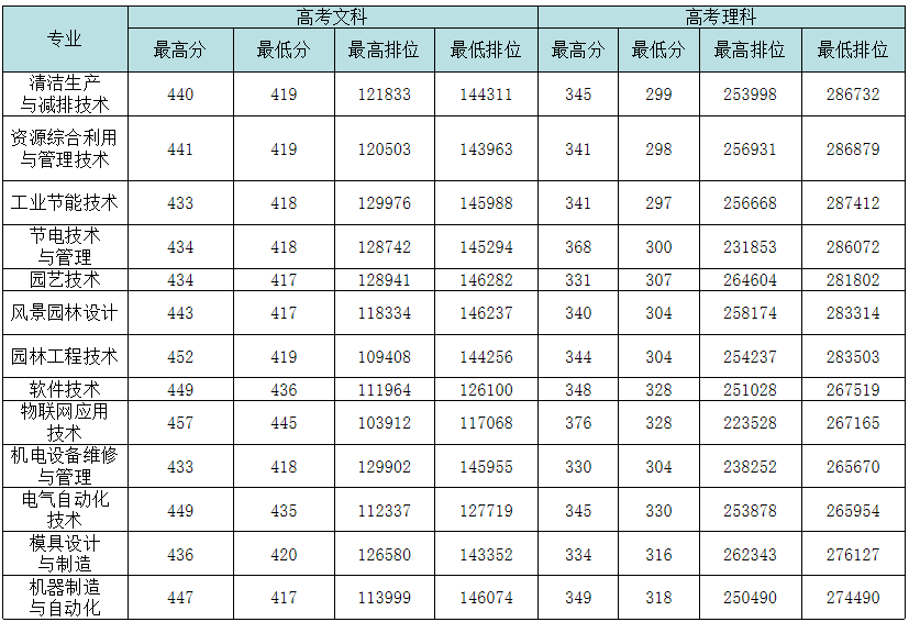 广东环境保护工程职业学院2019年专科各省各专业录取分数线