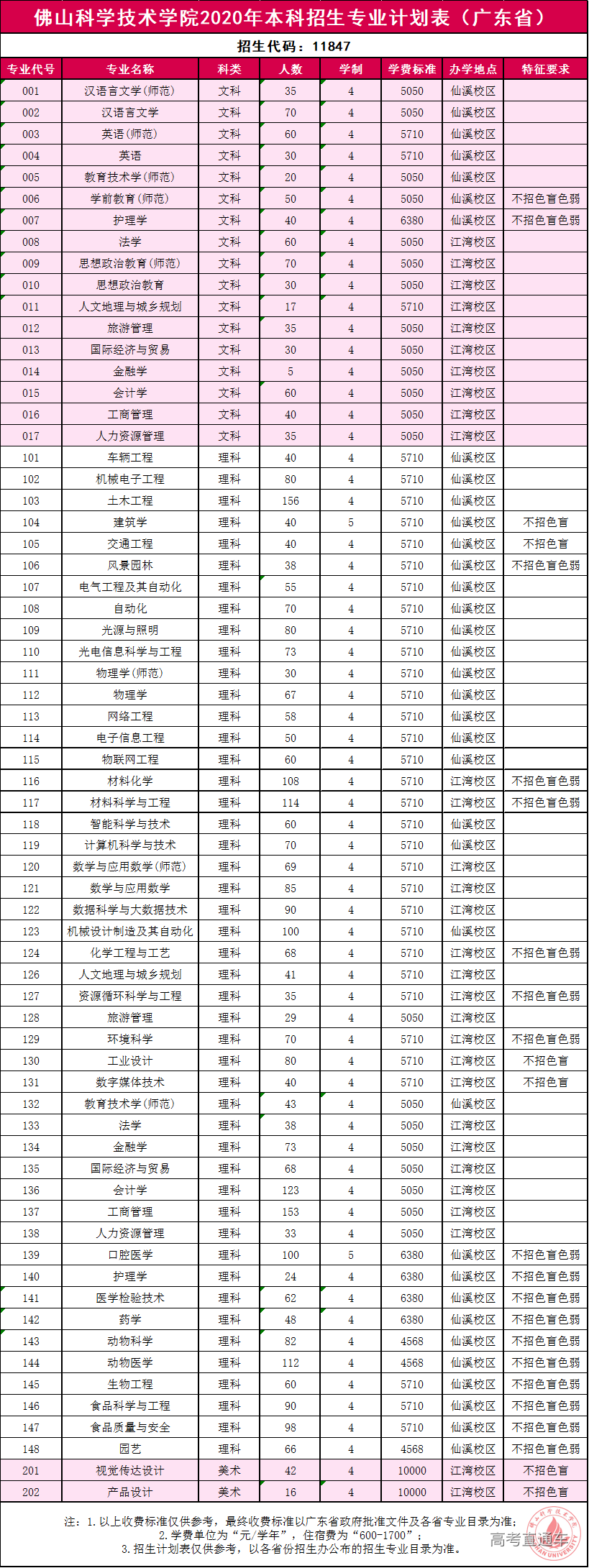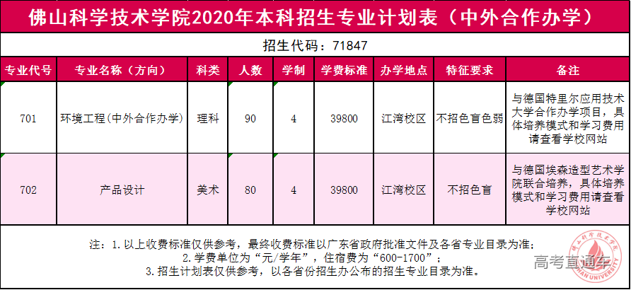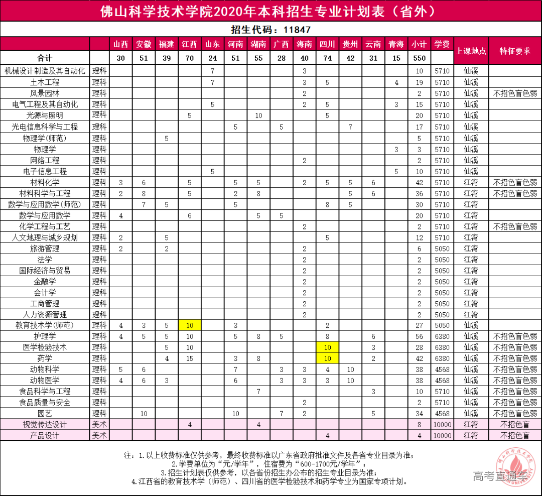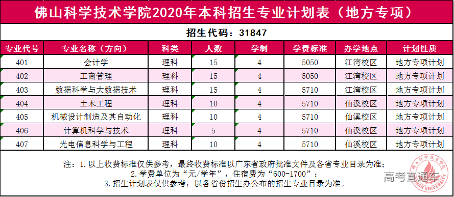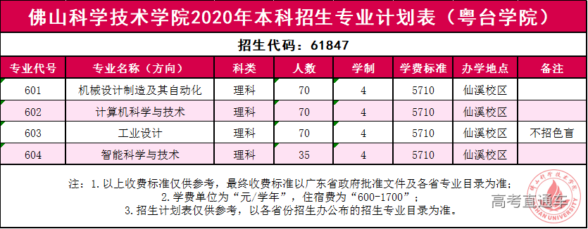 佛山科学技术学院2020年本科招生专业计划