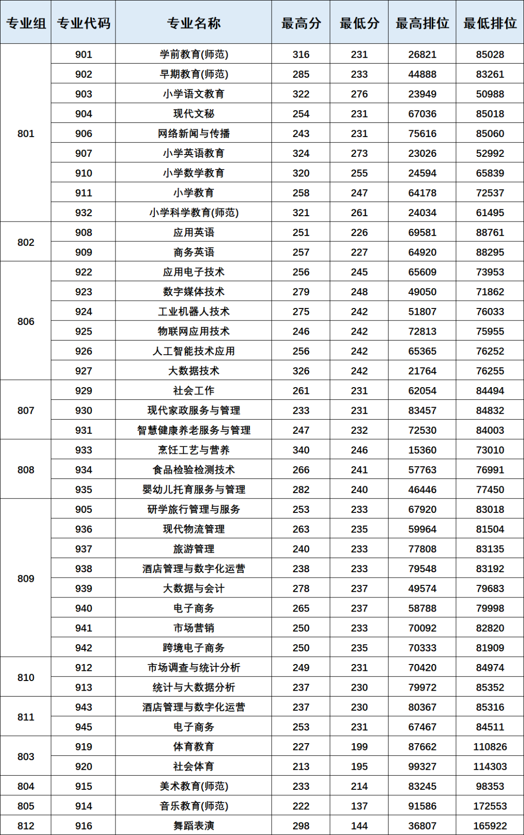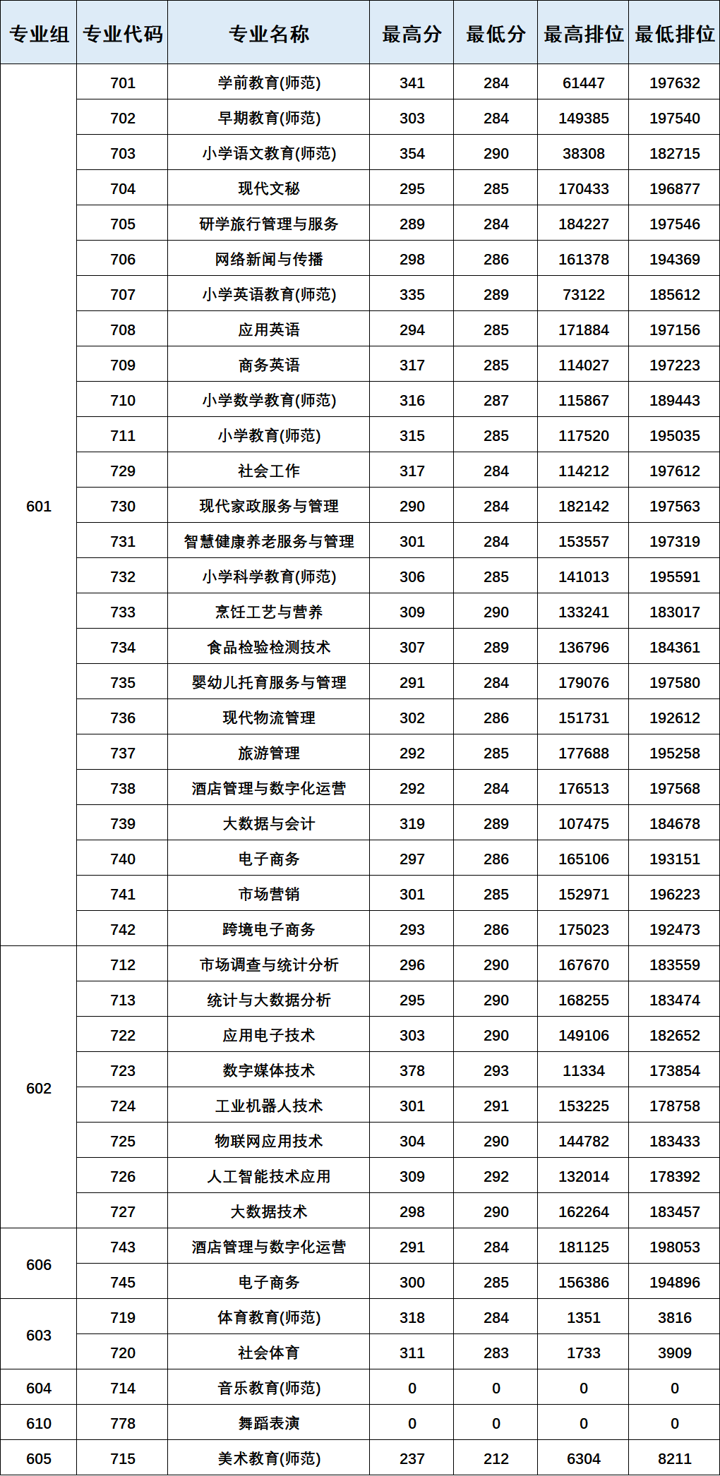湛江幼儿师范专科学校2026年春季高考投档结果公布(含专业分)