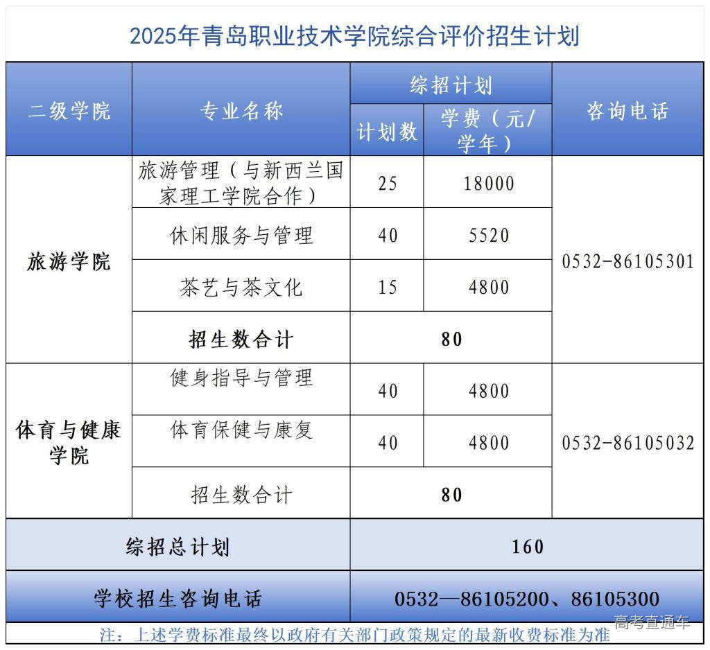 青岛职业技术学院2025年单独招生和综合评价招生计划