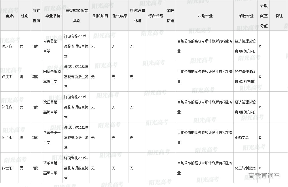 ②入选考生达到生源所在省份一本批次录取控制分数线即予以录取的,以“C”标注;也可是"C"+"数字",表示一本批次录取控制线上多少分录取,如C20表示一本批次录取控制线上20分录取;