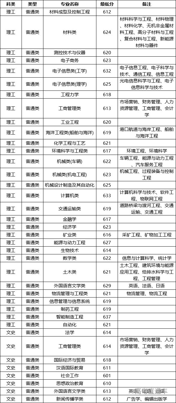 2020年武汉理工大学在云南省分专业录取分数线