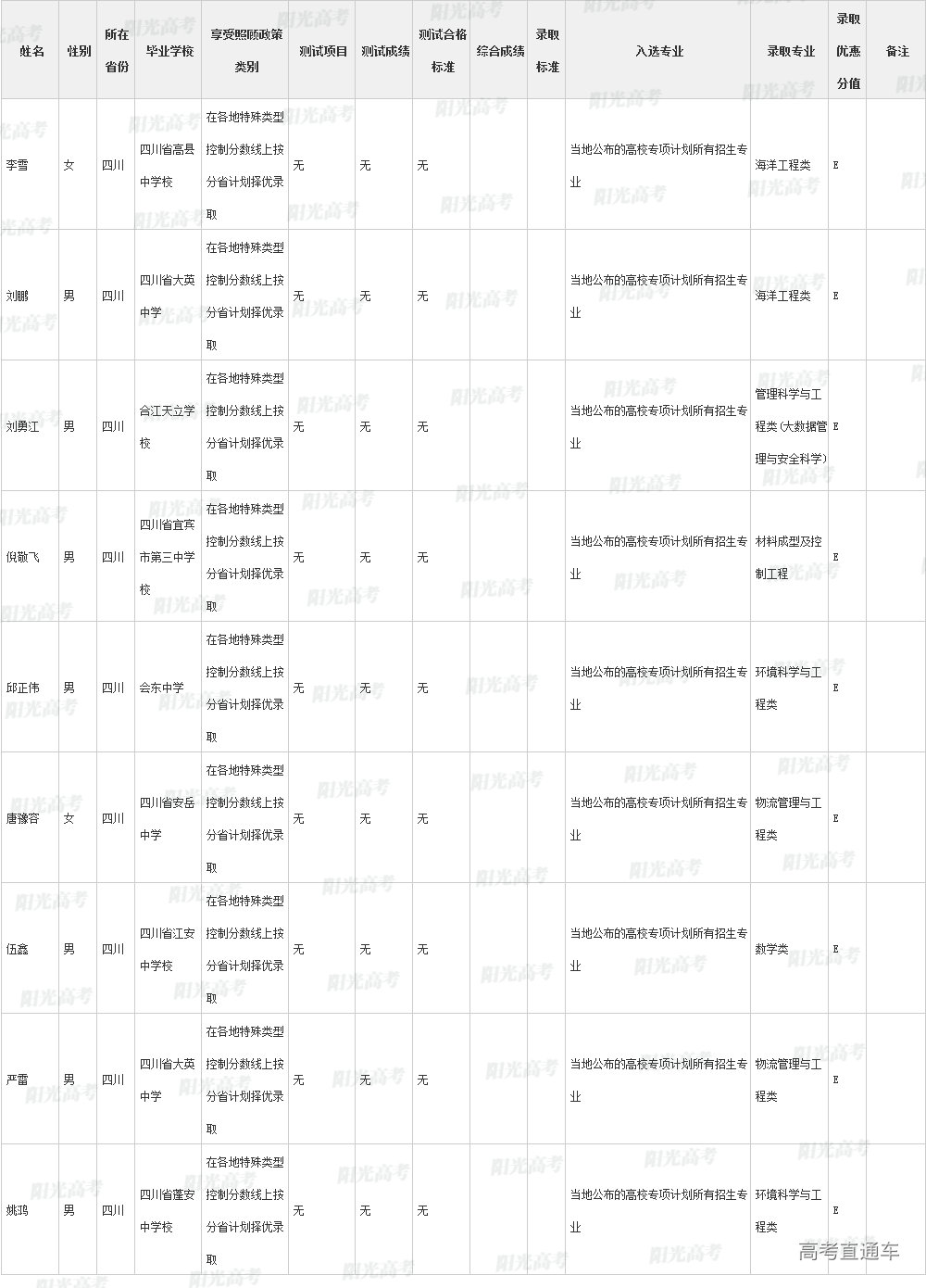 ④按分省计划择优录取的用E标注;