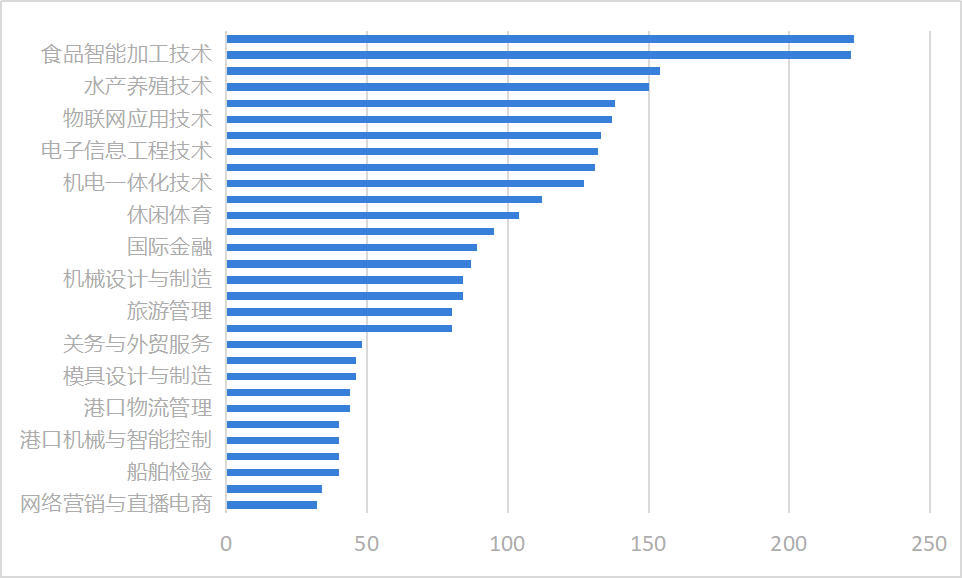 国际商务专业录取的同学最多,共223人,其次是食品智能加工技术、轮机工程技术专业。术业有专攻,希望所有萌新们在海院能学有所成!