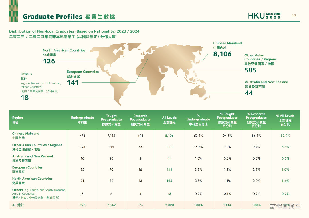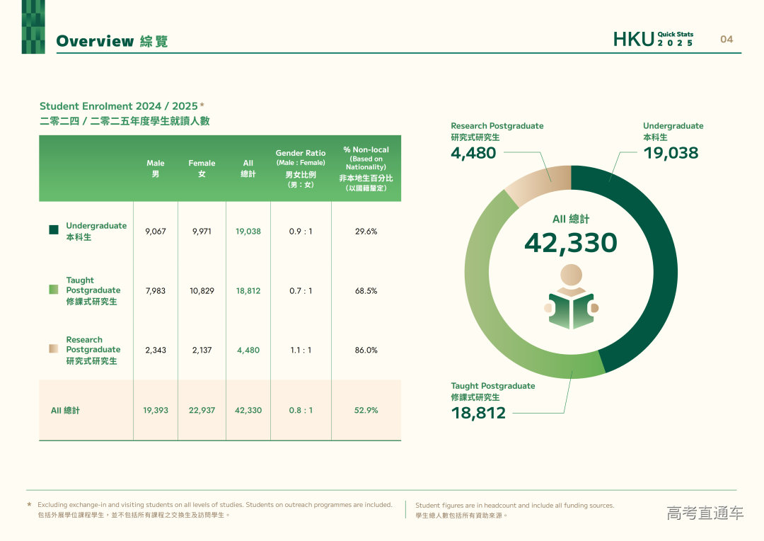 目前在所有港大学生中,非本地生占比为52.9%,已超过总数的一半,反映港大的国际化程度越来越高了!