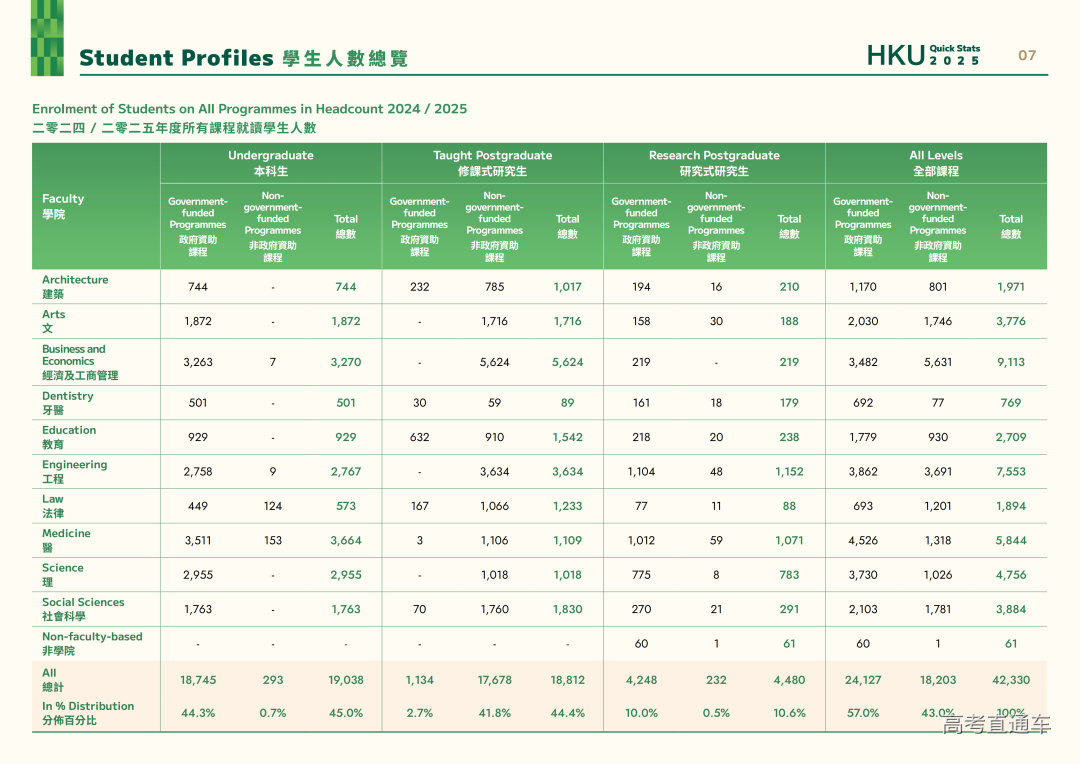 根据历年数据来看,港大学生数量呈逐年上升趋势,2024/25学生总数比上一学年的39,166人新增了3,164人。