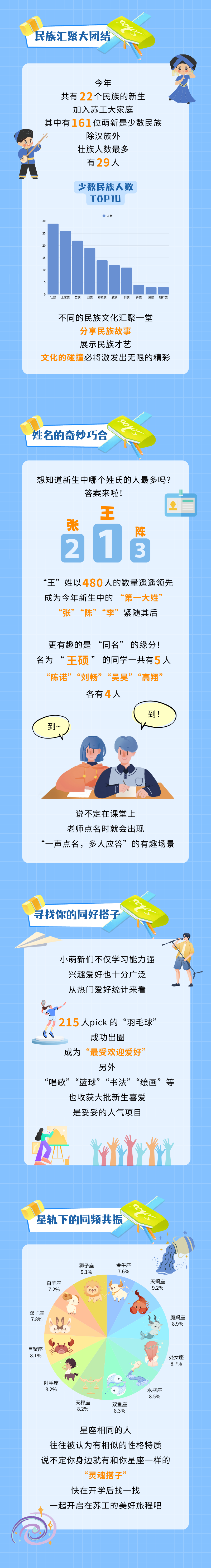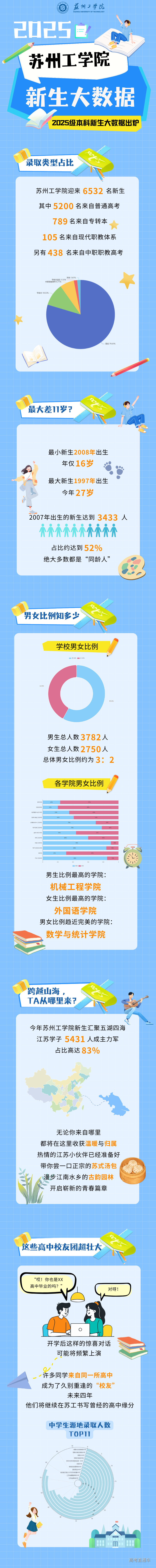 每组数据 都是青春注脚、相遇预告 苏工的校园 因每一个独特的你而鲜活 也因这份相聚的缘分而温暖 新的故事即将开始 愿你们在这里 遇知己、逐热爱 让梦想有归处!