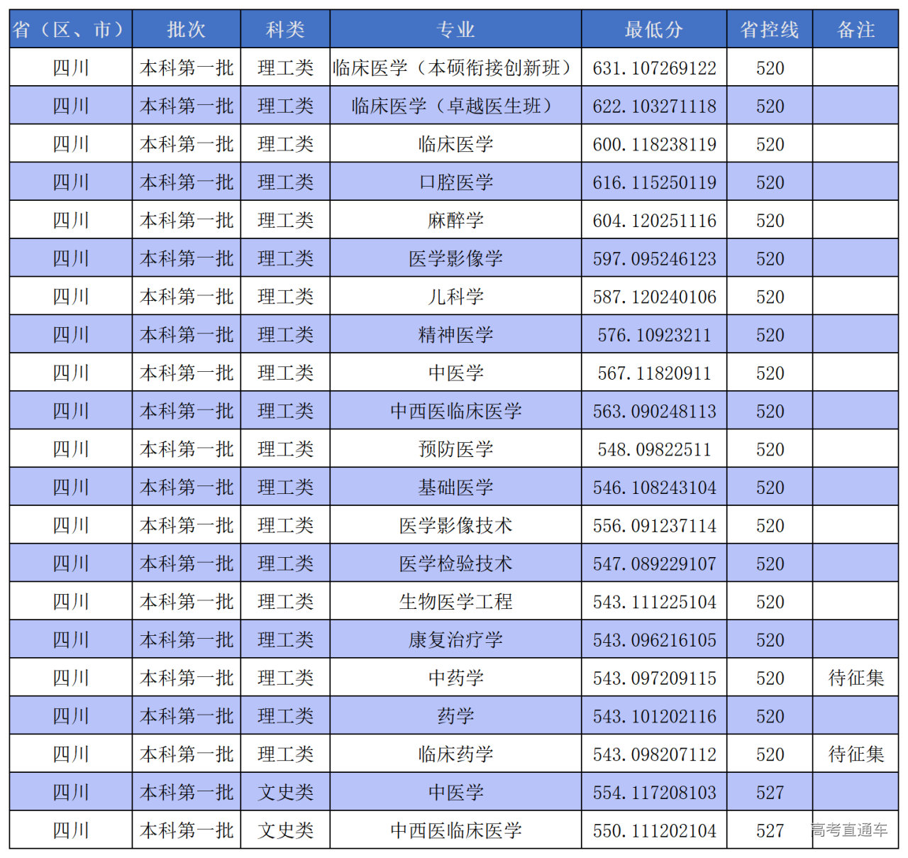 西南医科大学2023年四川本科一批一志愿分专业录取分数公布