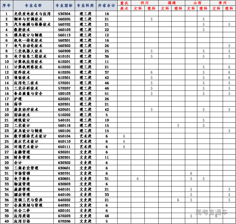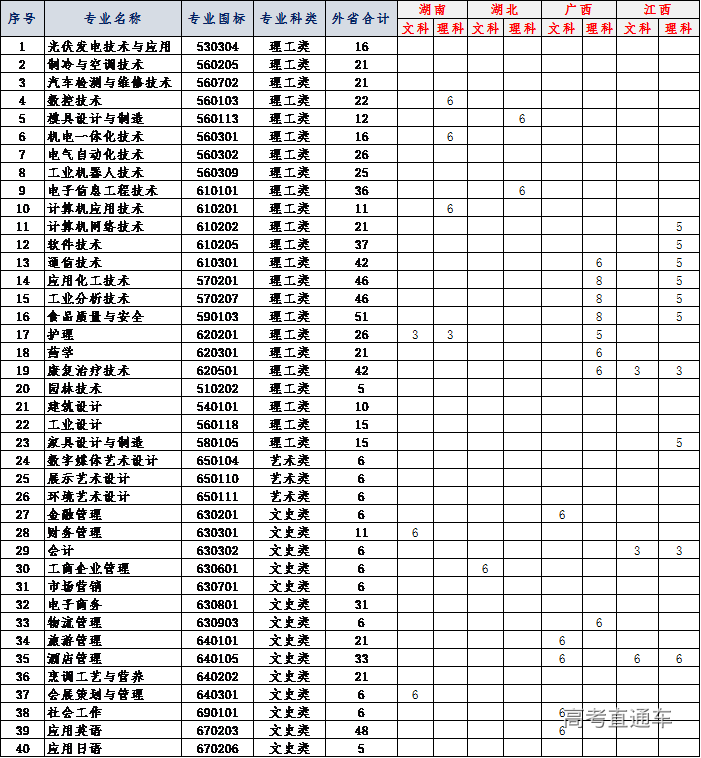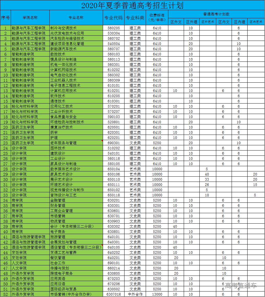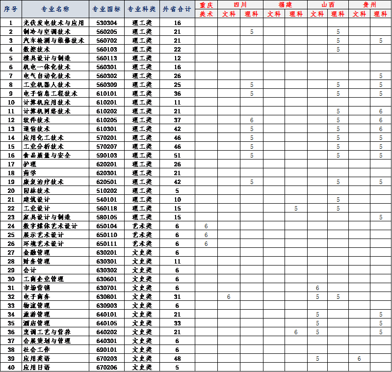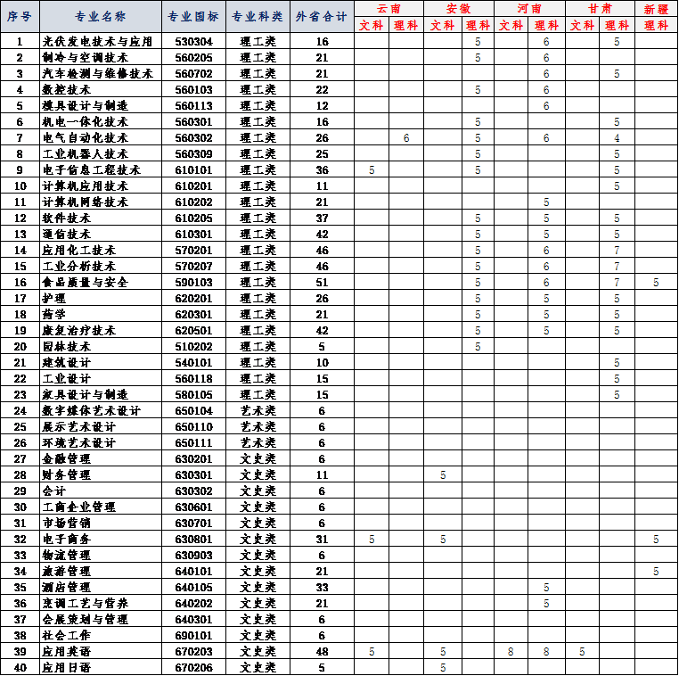 2020年外省招生计划表一览表