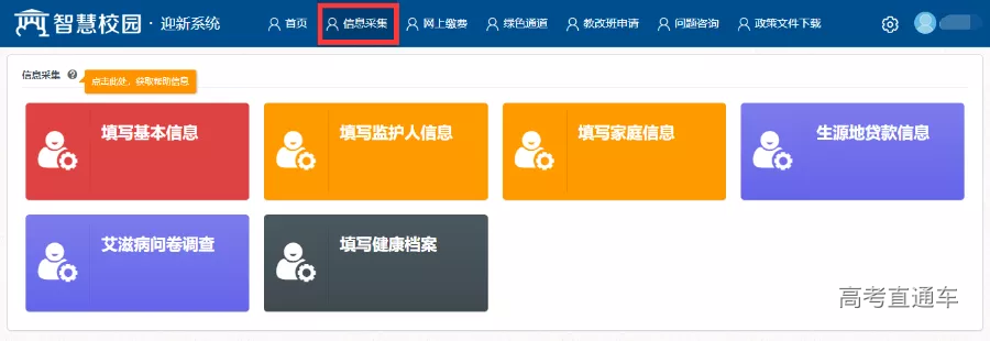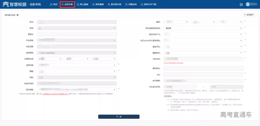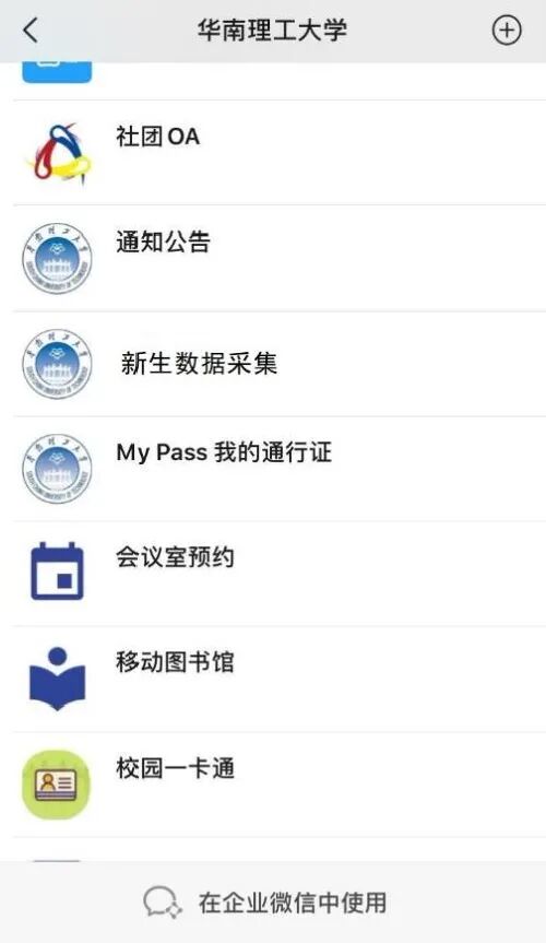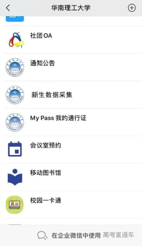 或通过华工微信企业号中的“新生数据采集”进入迎新系统:
