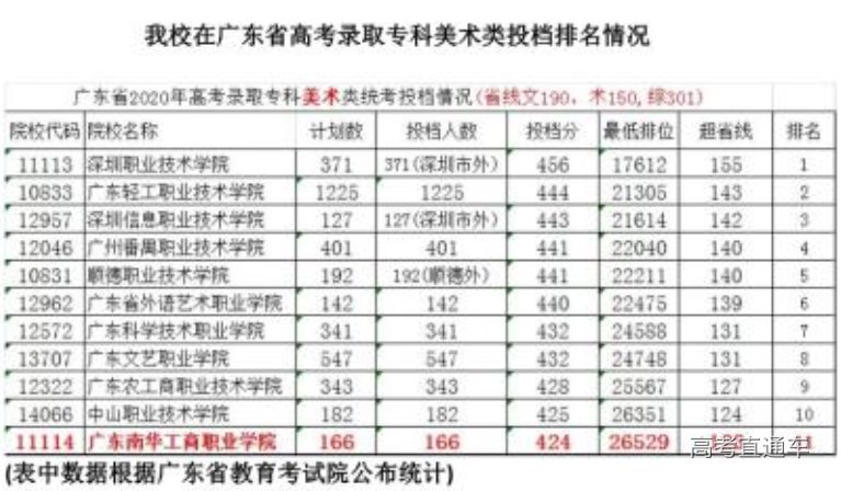 盼星星 盼月亮 终于把它盼来了 我校的录取分数线出来了 快来围观 文科最低分数 403 最低排位 126413 理科最低分数 408 最低排位 218522 省内各类别投档情况在省内排名中持续大幅度提升,今年我校理科类全省第6名(19年第11名),文科类全省第11名(19年第20名),美术类全部本科线上录取。省内高职院校排名中,我校投档排名再创佳绩。 其中文科类录取最低403分,最低排位126413名(19年最低排位127671名),较去年上升1258名。理科类录取最低408分,最低排位218522名(19年最低排位238152名),较去年上升1963名。