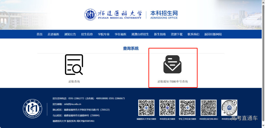 3.向下滑动,点击进入“查询系统”——“录取通知书EMS单号查询”;