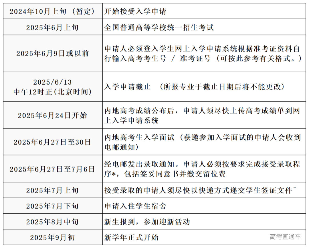 2025年6月13日中午12时正(北京时间)。当申请递交后,每位申请人只有一次更改志愿的机会。所报专业于截止日期后将不能更改。