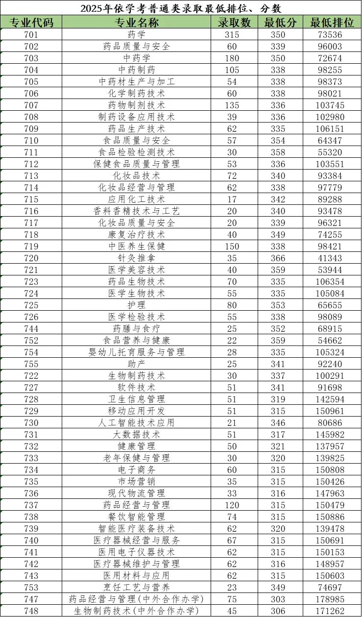 广东食品药品职业学院2025春季高考各专业录取分