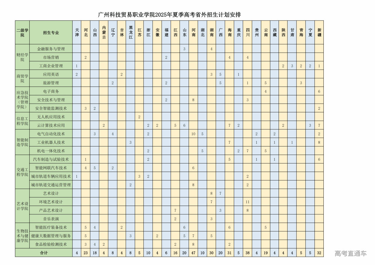 学校2025年夏季高考招生计划1888人,33个招生专业面向全国29个省(区)招生。其中广东省招生计划1500人(普通类1270人,本科协同育人三二分段230人),外省计划338人。