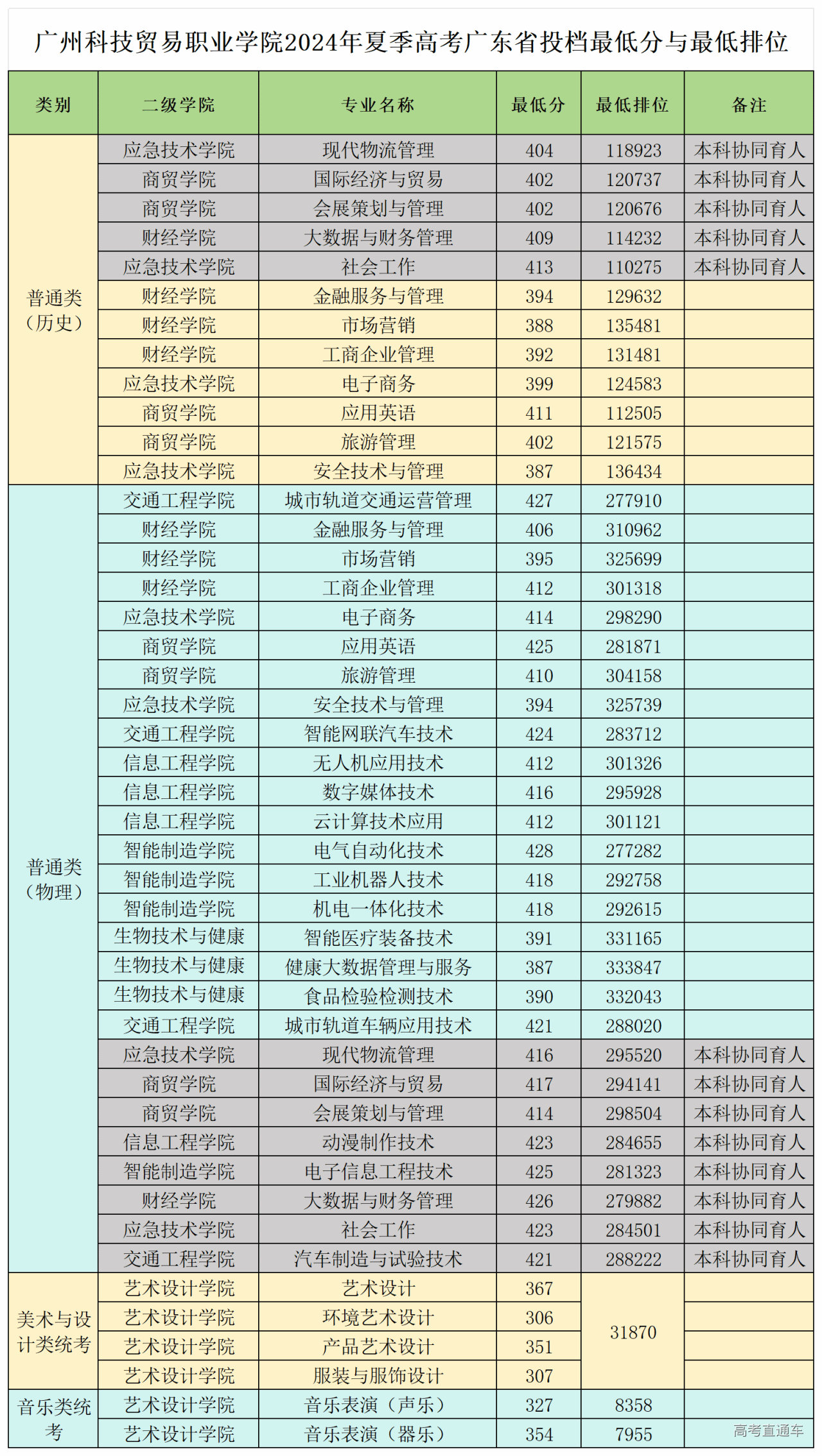 三、2024年夏季高考各专业录取最低分与最低排位