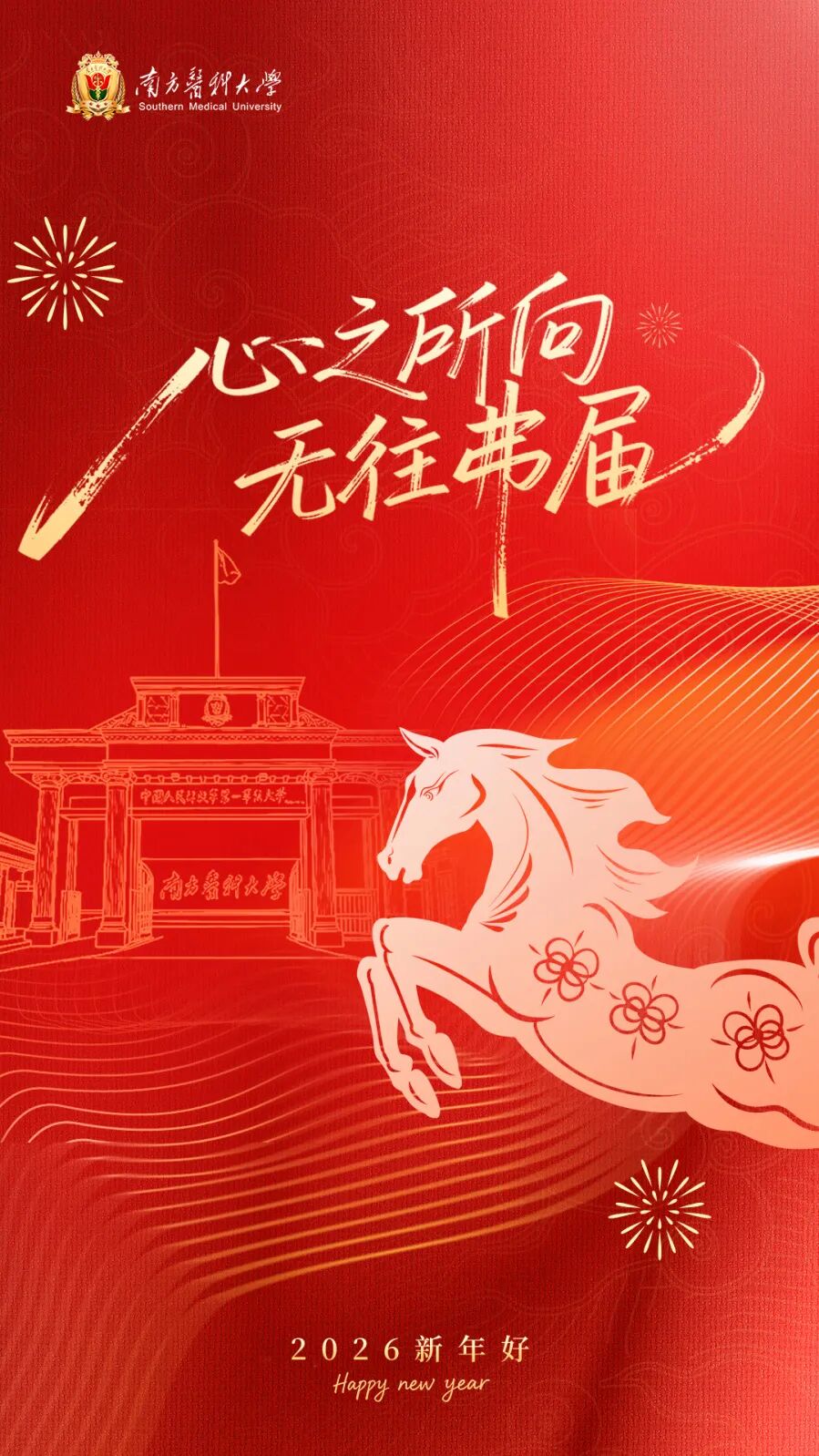 新年好!在2026年的钟声即将敲响之际,我们谨代表学校,向全体师生员工、离退休老同志、海内外校友,以及所有关心支持南方医科大学发展的各界朋友,致以最诚挚的问候与最美好的新年祝福!