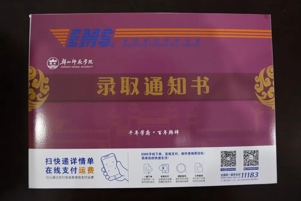 在一条条短信过后,许多学子都收到了自己满意的答复。与此同时,为韩师学子们准备的录取通知书大礼包也在紧张筹备着。终于,“广东本科录取通知书”于今日寄出!