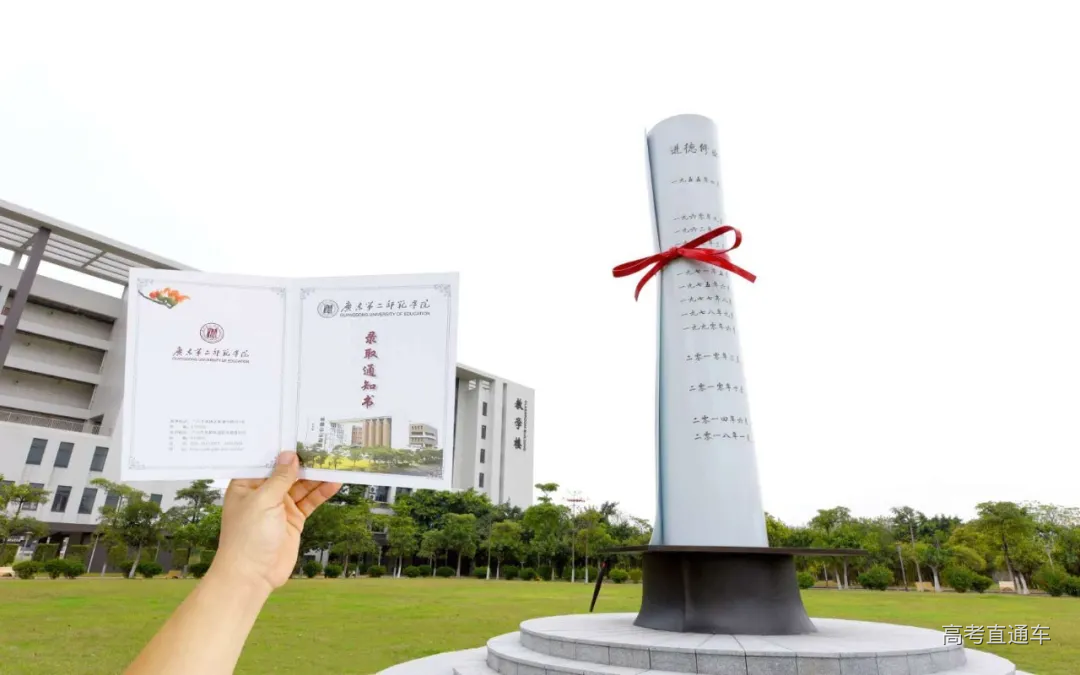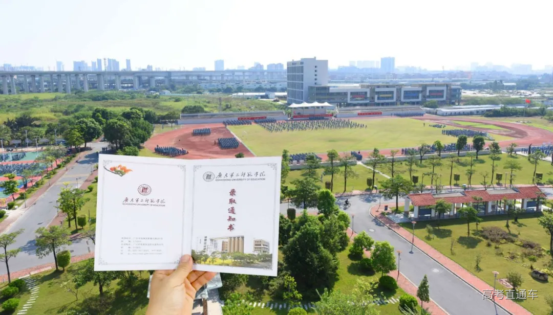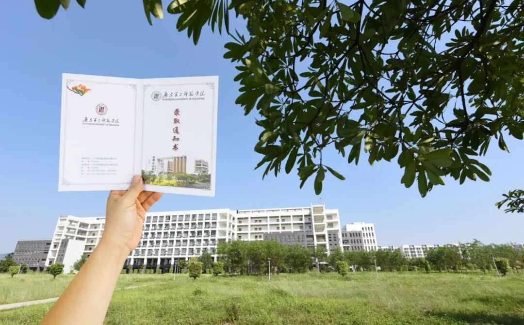 花都校区 校门牌坊刻着广东二师的校训: “进德修业,为人师表”。 作为二师学子,今后的日子,请将校训内化于心,外化于行。 无书不成校园,图书馆将会陪伴你一起学习、成长,陪你度过备考的日日夜夜。图书馆门前的卷轴篆刻着广东二师成长的足迹。 走在广东二师校道上,随手一拍都是美景,上学路给你愉快好心情。 行进的口令一声又一声,新生们,准备好接受军训的考验了吗? 谁说广东二师花都校区植物少?校内更多花花等你来解锁! 海珠校区 小蛮腰下的海珠校区,夜里一定更美。 袅袅荷花香气来,谁人傍荷与书怀? 初心 即将成为大学新生的各位,请铭记不忘初心、牢记使命的教诲。 2020级广东二师的新生 都是我们翘首以盼的惊喜 带上录取通知书 九月,我们不见不散!