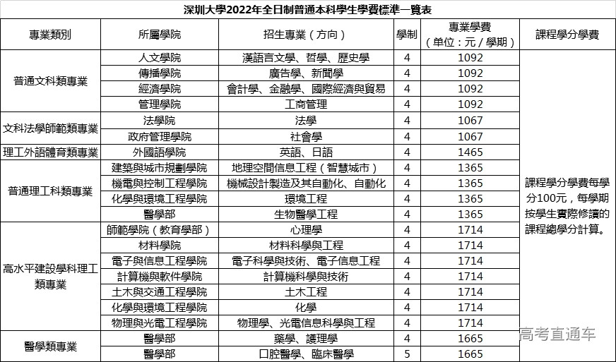(一)學費(不含書費):按學分制收費,由課程學分學費和專業學費兩部分組成,每學期學生繳納學分學費按學生實際修讀的課程總學分計算(課程學分學費的標準為每學分100元);