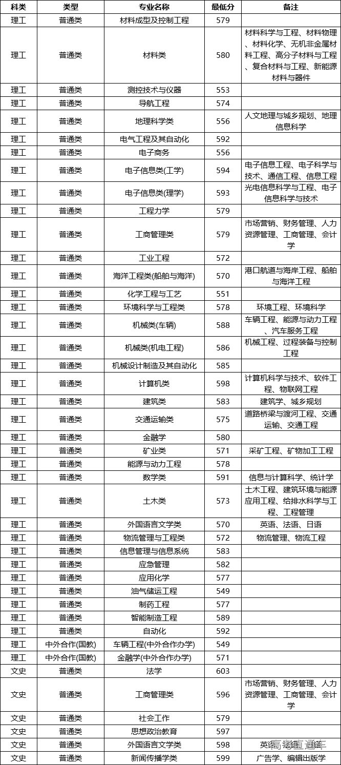 2020年武汉理工大学在内蒙古自治区分专业录取分数线