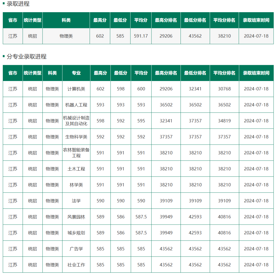 东北林业大学【江苏省】2024年本科批、中外合作办学录取结果公布