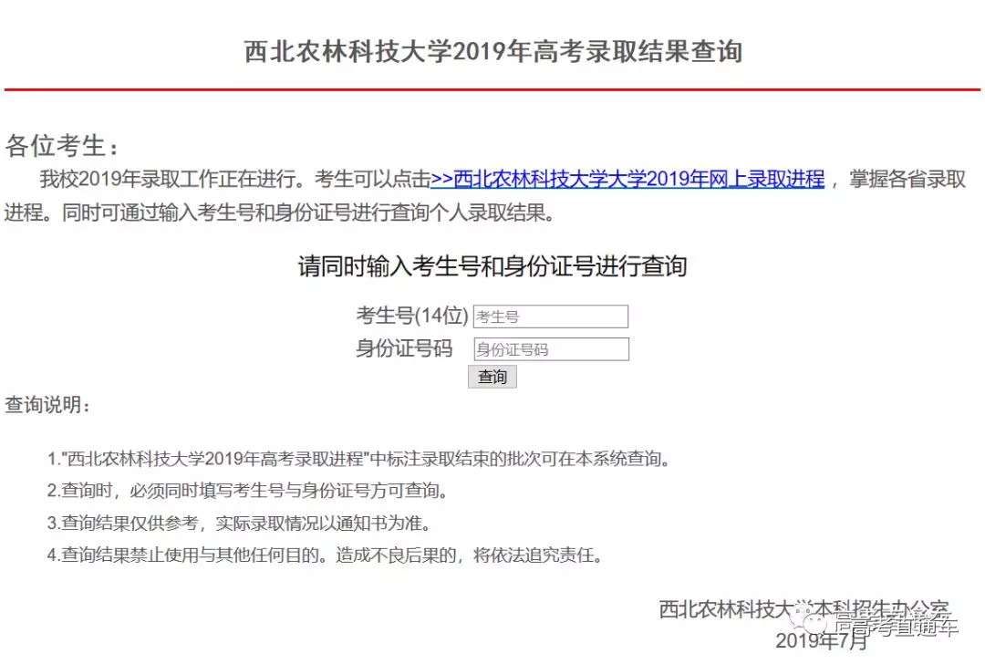 2019年高考录取查询网址:https://zhshw2.nwafu.edu.cn/luqu00/index.php?r=luquresult/show