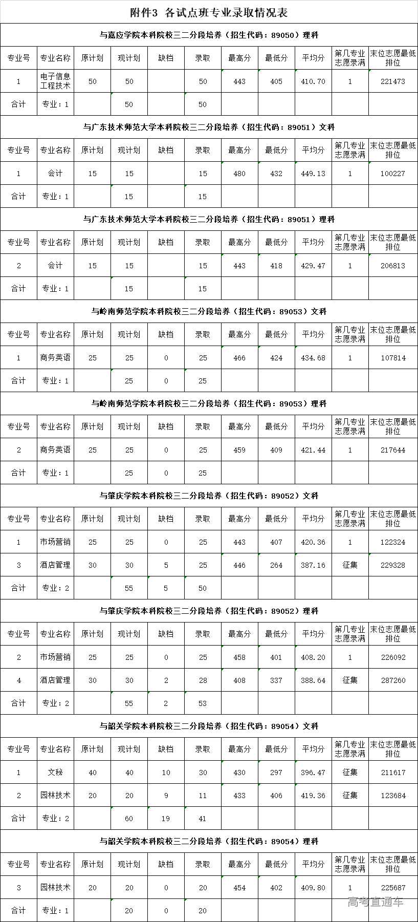 按照广东省教育考试院的工作安排,下一阶段(9月5-9日)我校市场营销(BTEC)文科、理科及部分三二分段本科班尚有少许计划缺额,需要进行志愿征集,征集要求待省考试院进一步通知。