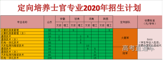 通信技术:与中国人民解放军陆军、火箭军合作培养。培养具有良好的综合素质、掌握通信技术知识技能、适应部队信息化建设一线需要的高素质技术技能型人才。