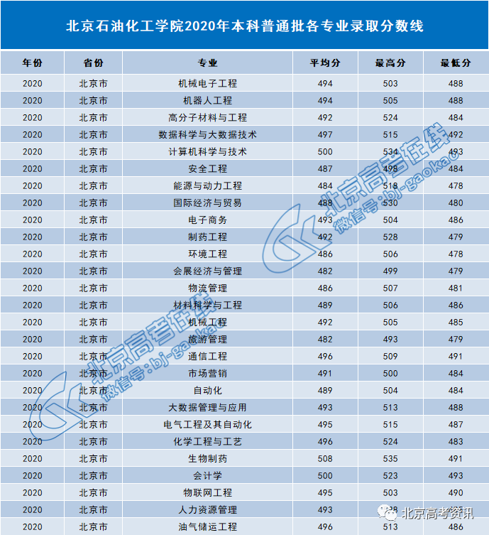 8月18日,北京石油化工学院率先公布了2020年本科普通批次各专业录取分数线!