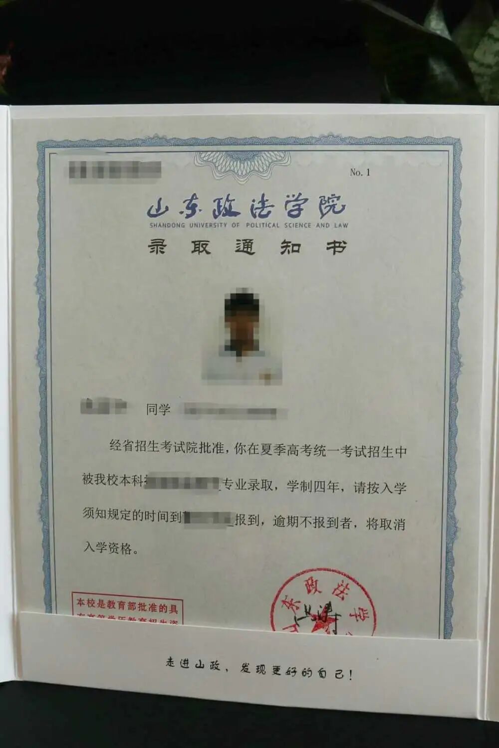 烫金的“录取通知书”五个大字