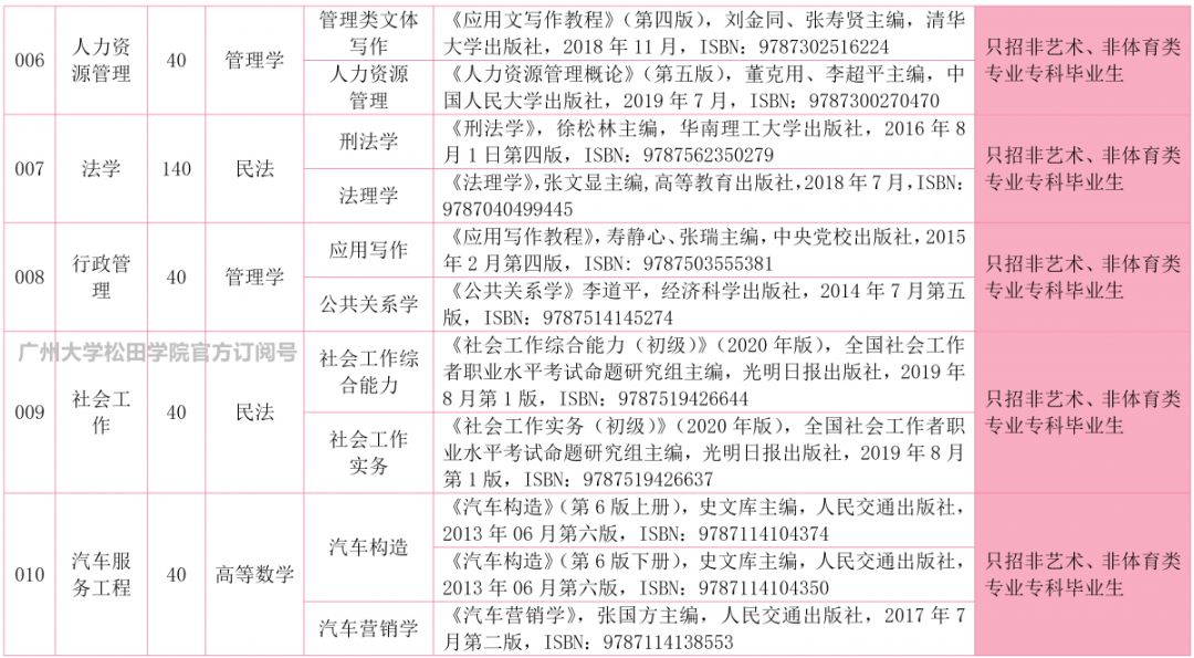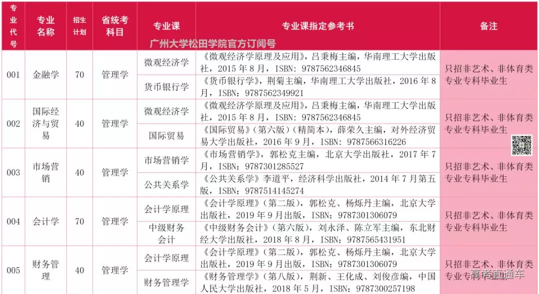 注意:本次公布的招生计划较前期公布的有调整,请最终以广东省教育考试院公布的2020年本科插班生考试专业目录为准。