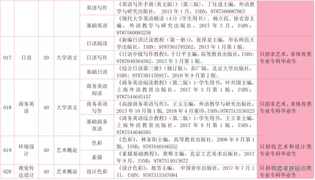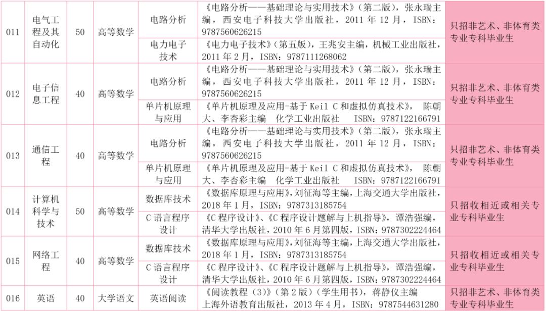 除英语、日语、商务英语以外的所有专业考试科目为五门,其中省统一考试三门,我校自主考试两门专业课。省统一考试的三门为政治理论、英语和专业基础课(详见专业目录)。