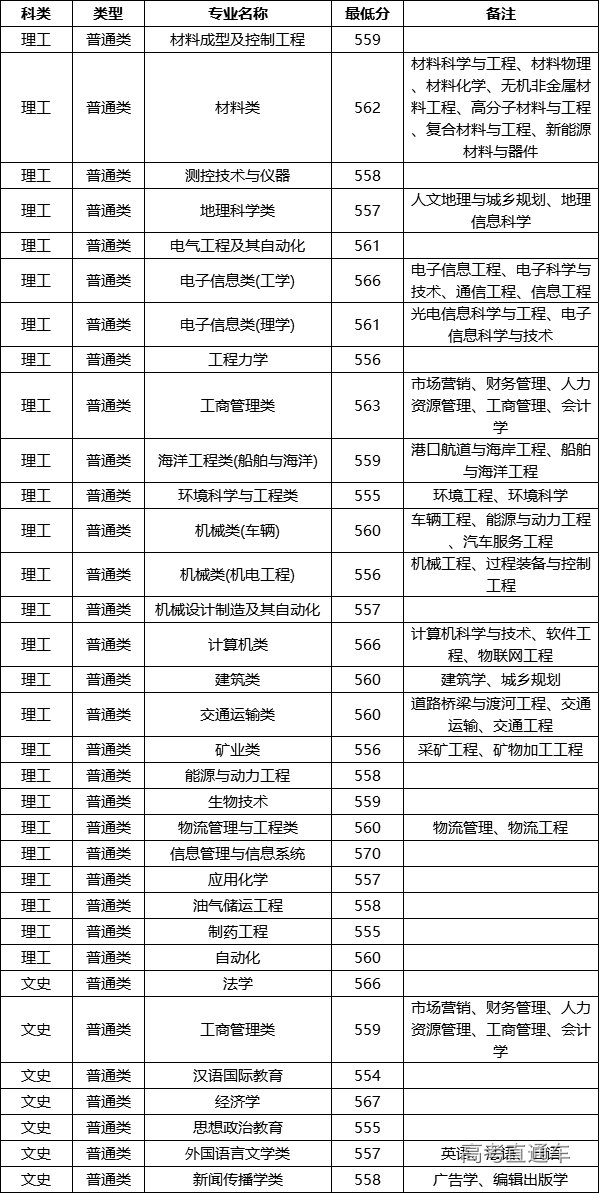 2020年武汉理工大学在新疆维吾尔自治区分专业录取分数线