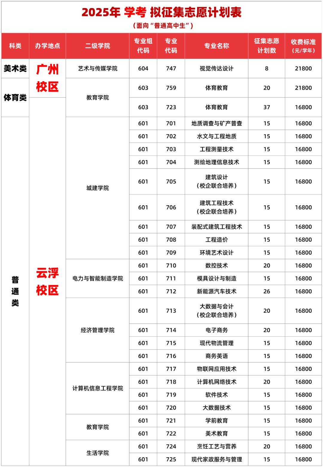 从本批次投档情况看,我校大部分院校专业组生源质量较去年有所提高,其中学考(普通类)602专业组超出省控线76分,投档最低排位较去年提高26154;学考(美术类)超出省控线11.5分,投档最低排位较去年提高980;学考(体育类)超出省控线12分。3+证书两校区专业组一次性满档,其中801专业组(云浮校区)超出省控线44分,较去年投档分提高19分;802专业组(广州校区)超出省控线43分,较去年投档分提高18分;