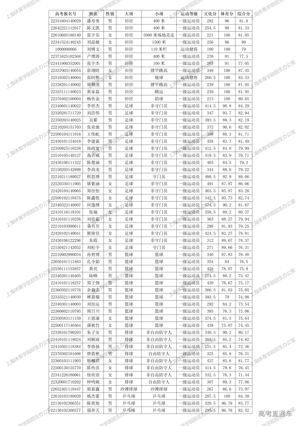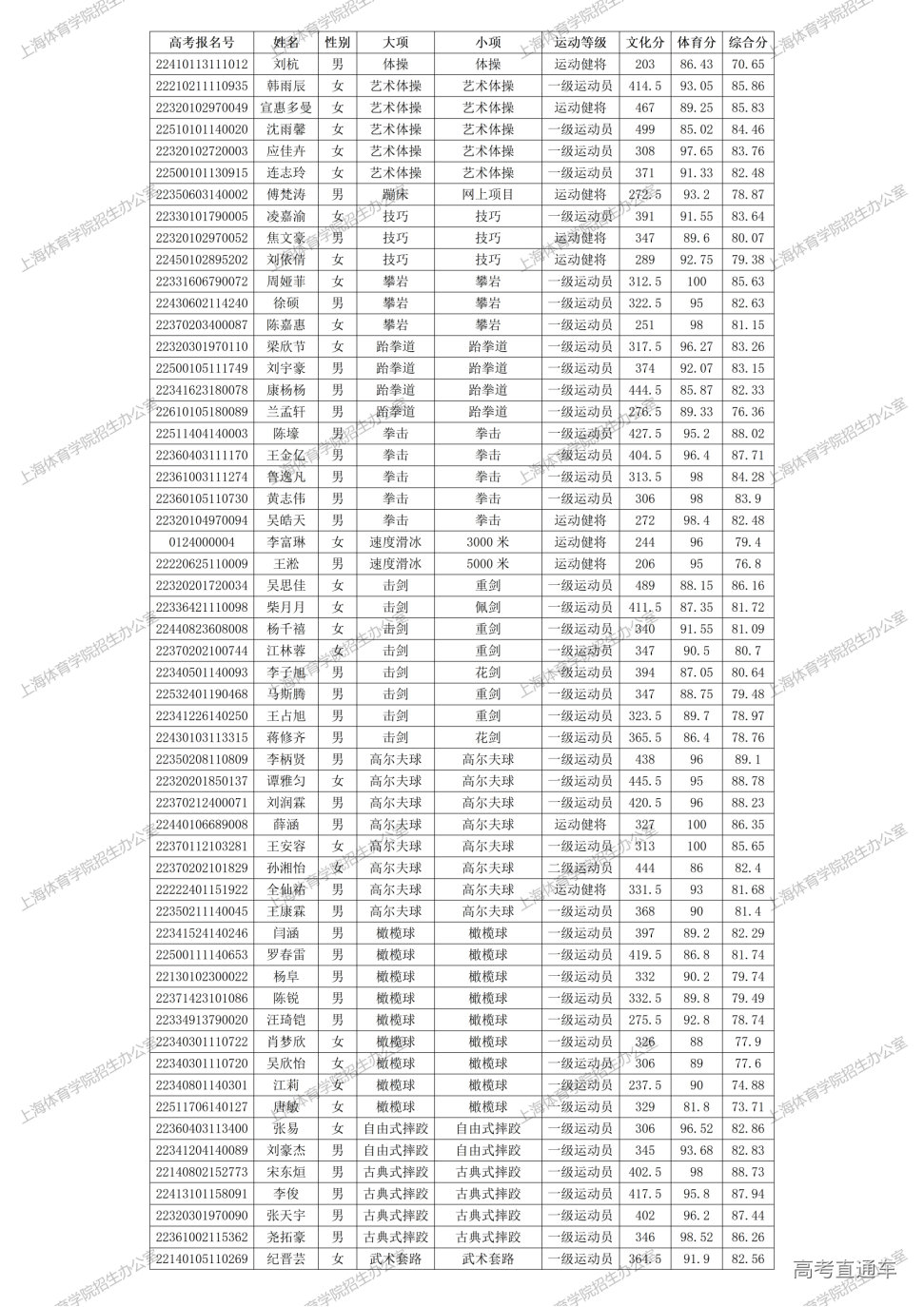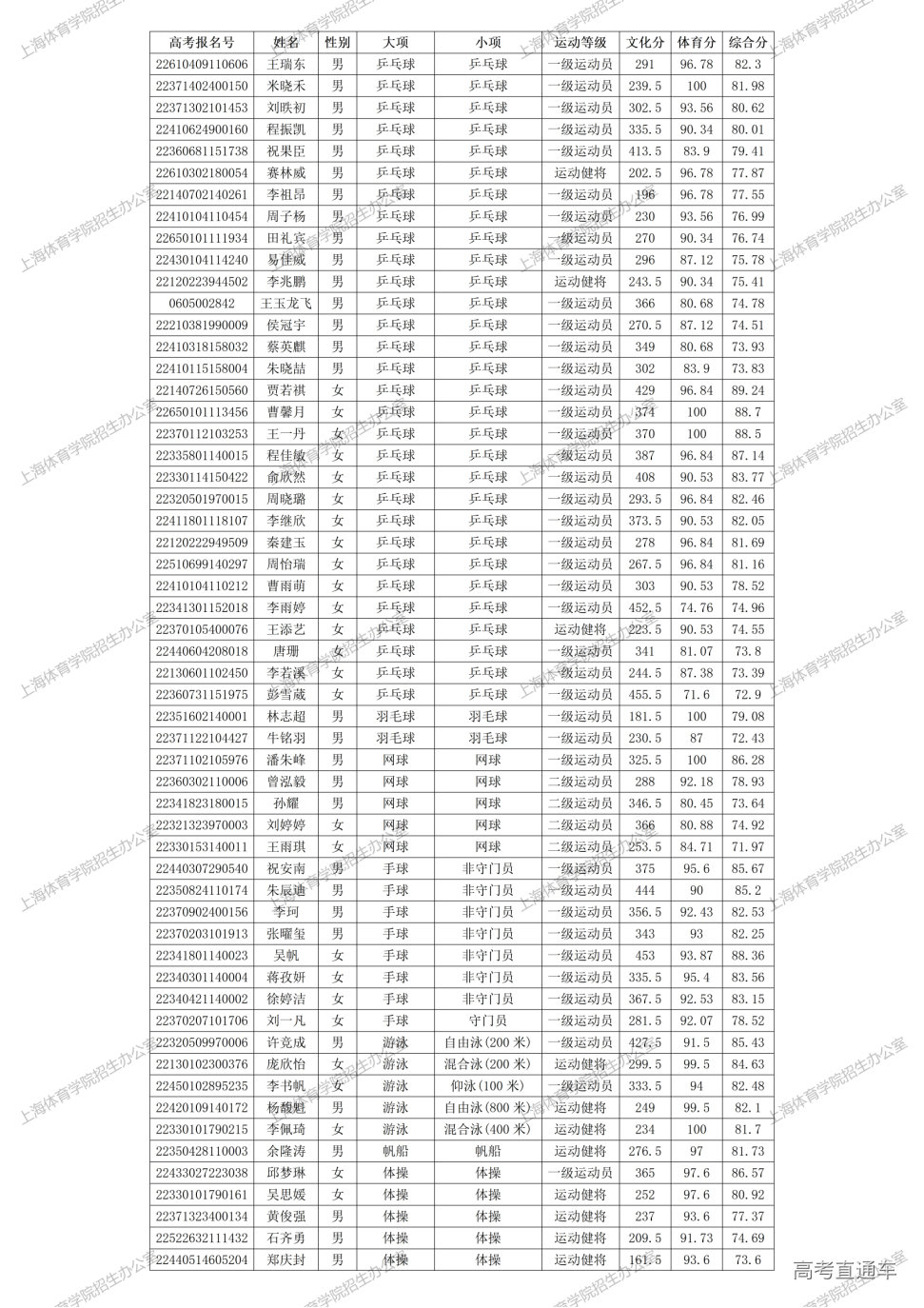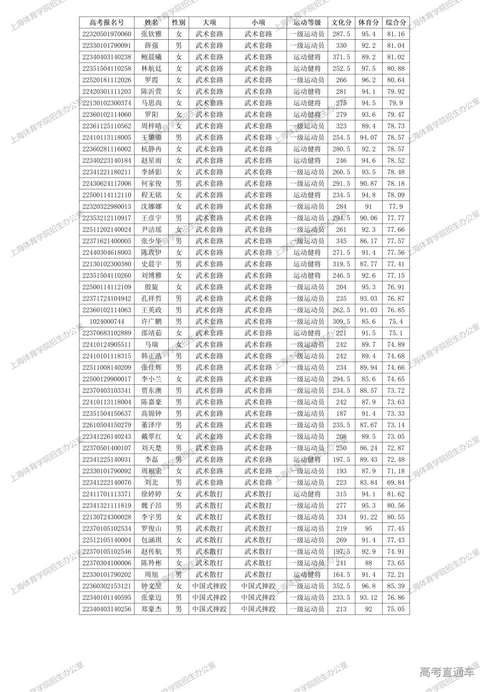 2.2022年上海体育学院运动训练、武术与民族传统体育专业非上海生源拟录取名单