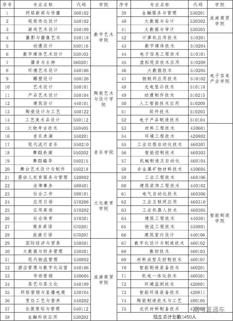 2023年单招计划为1450人。