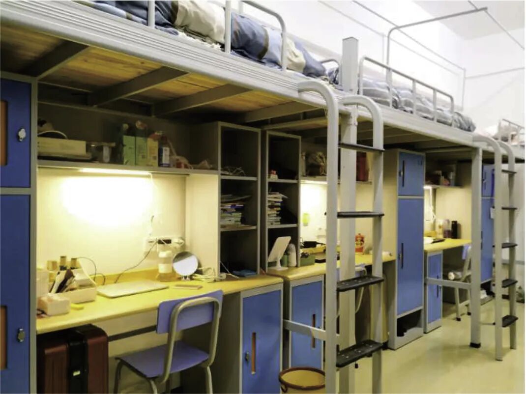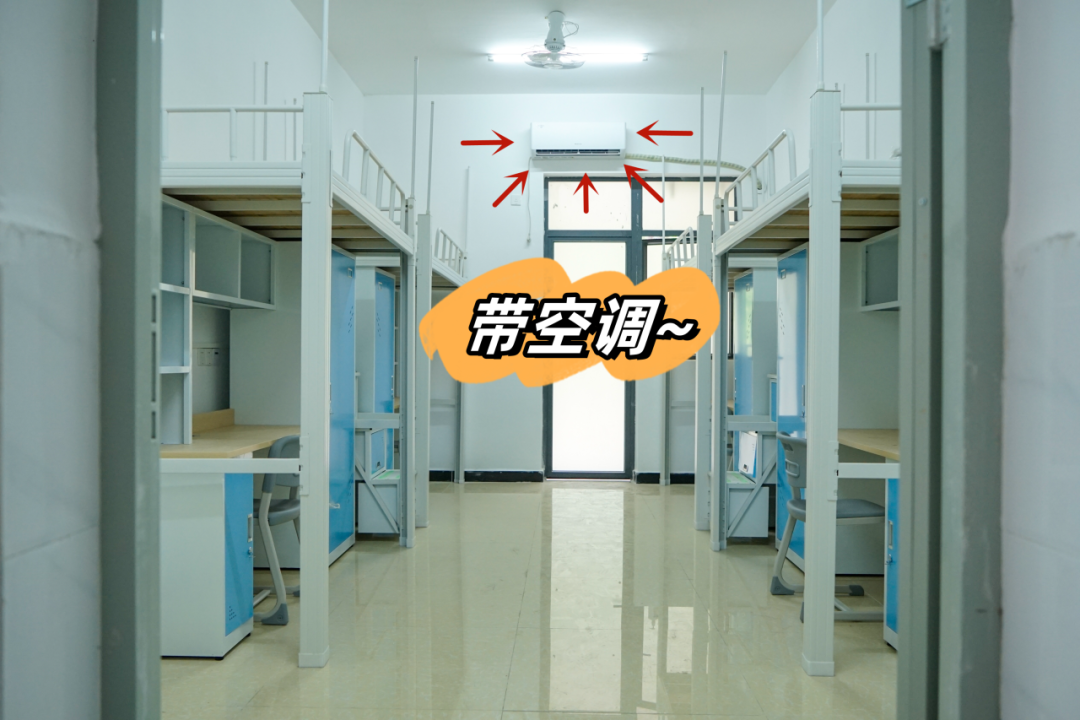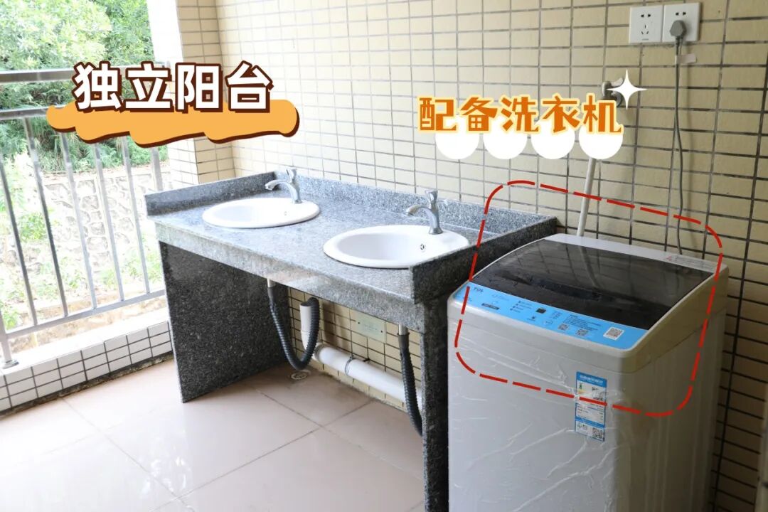 最靓宿舍,上床下桌超舒适 标准6人间宿舍 上床下桌一体式衣柜 配备空调、洗衣机等 独立卫浴和阳台 电梯公寓