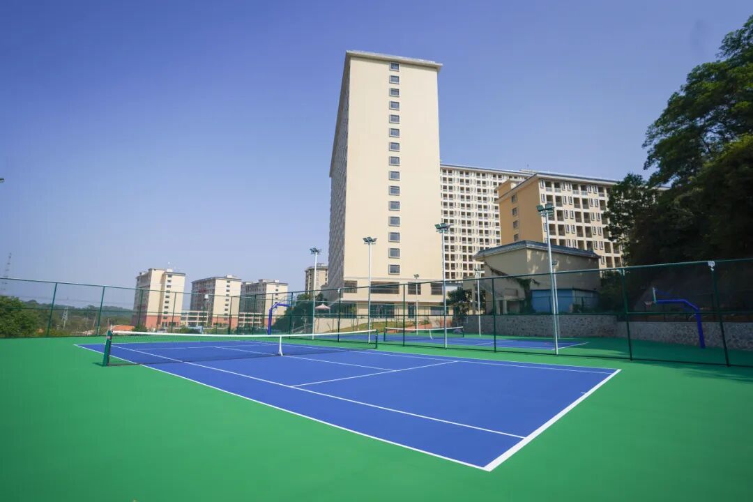 环境优美,风景如诗如画 学习生活环境舒适 教室、图书馆、饭堂 等场所均配备空调 健身房、足球场、羽毛球场 等文体场所一应俱全