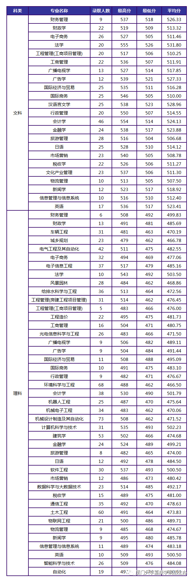 厦门大学嘉庚学院2020年在福建分专业录取分数线